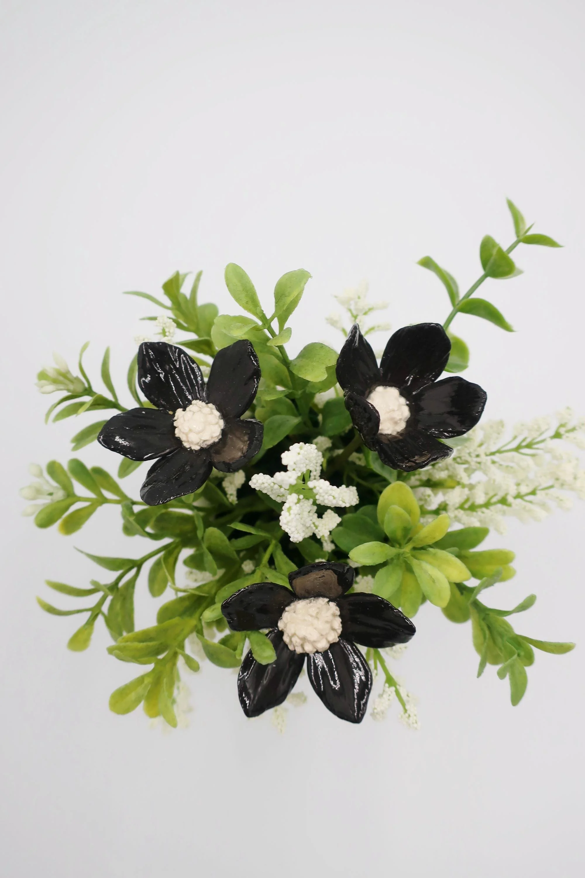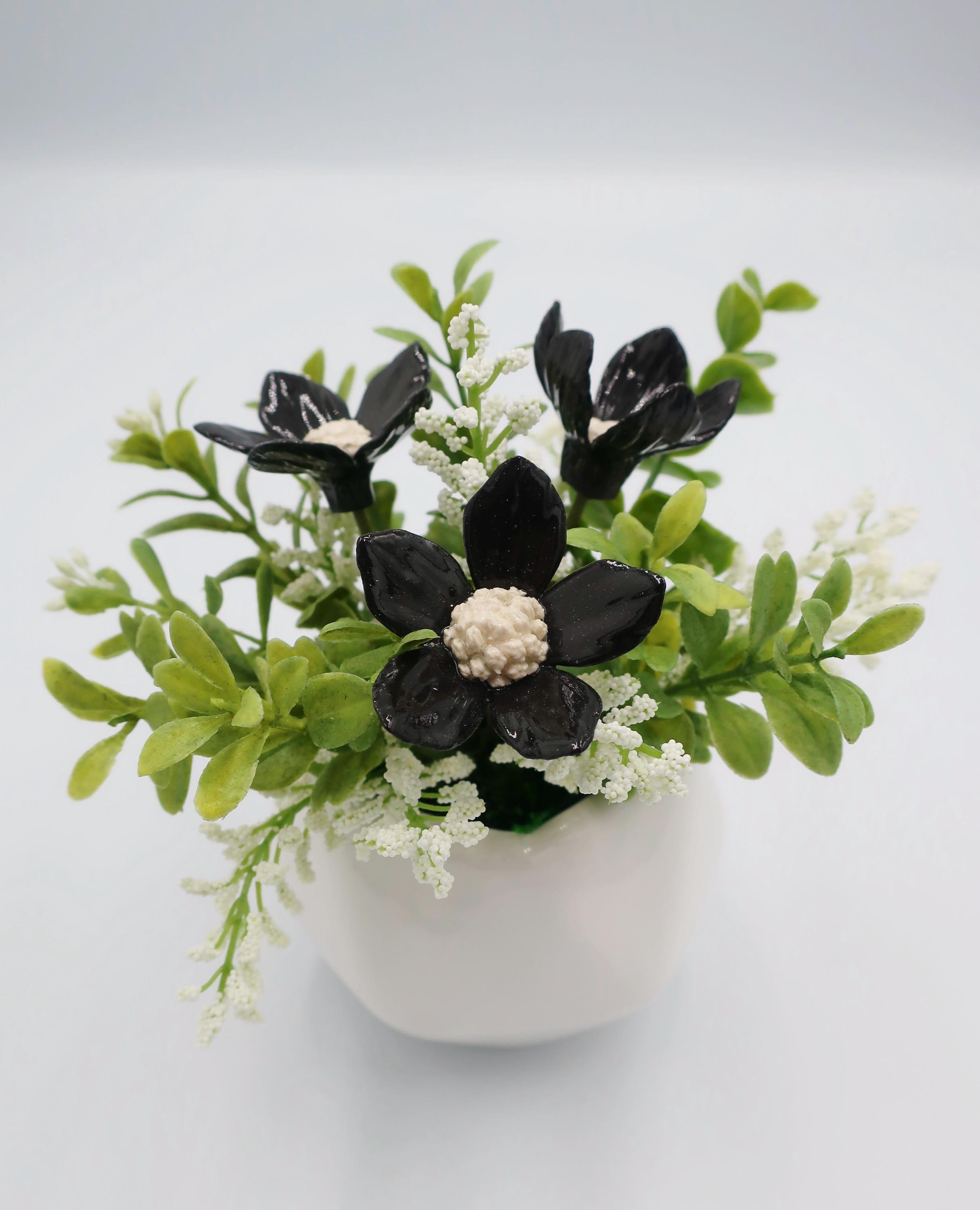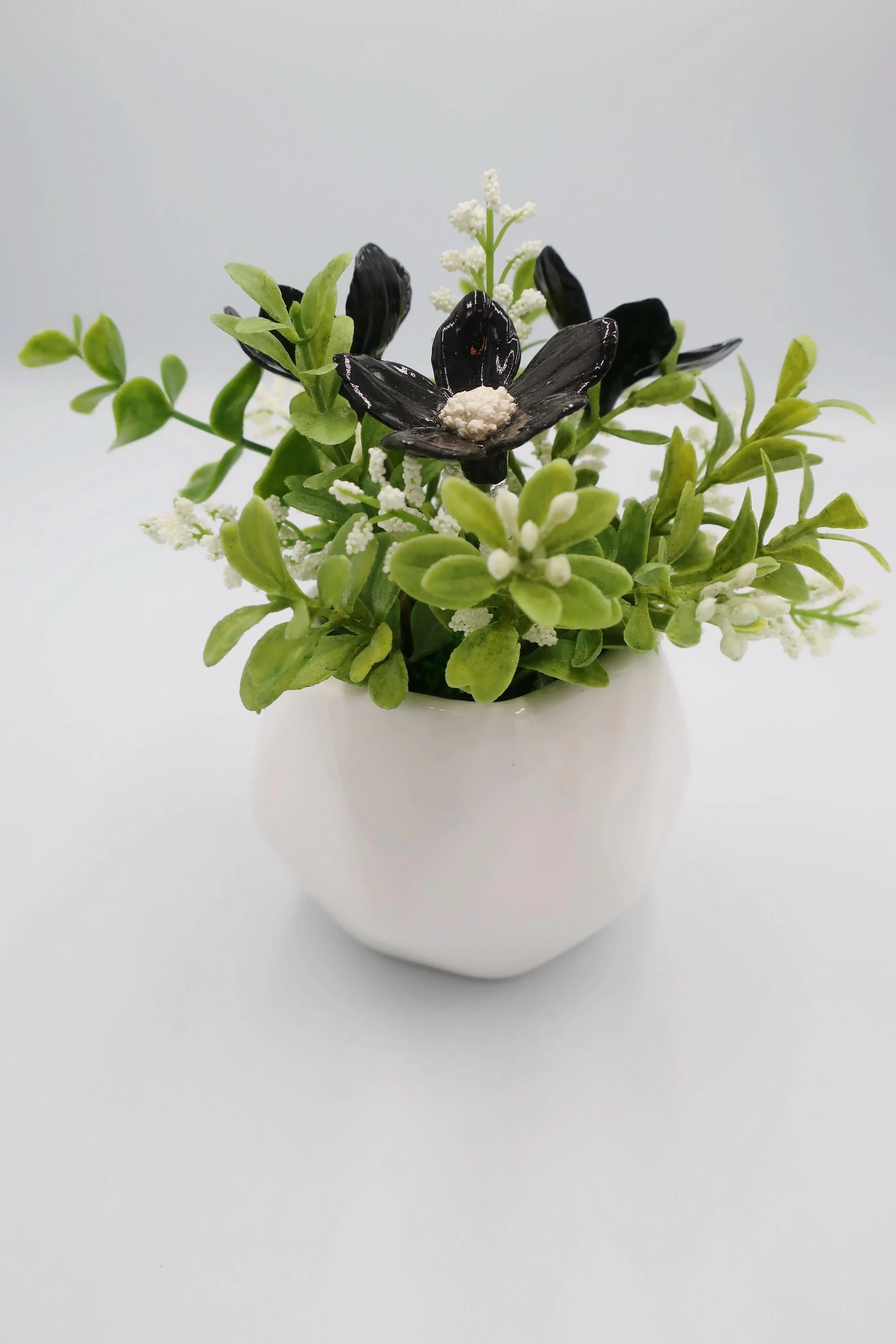 Arrangements › Black & White Arrangement Image 1 of 4 Image 2 of 4 Image 3 of 4 Image 4 of 4 Black & White Arrangement $60.00 Bring a little joy and color into your space with this handcrafted porcelain flower arrangement.- Materials: Porcelain flower, artificial greenery, white ceramic vase- Dimensions: 6" tall x 5" wide- Weight: 9.5 oz- Colors: Black, White, GreenMaintenance-Free: Enjoy the beauty of flowers without any of the upkeep.Thoughtful Gift: An ideal gift for birthdays, holidays, bereavement, anniversaries, or just because. Add To Cart Added! Bring a little joy and color into your space with this handcrafted porcelain flower arrangement.- Materials: Porcelain flower, artificial greenery, white ceramic vase- Dimensions: 6" tall x 5" wide- Weight: 9.5 oz- Colors: Black, White, GreenMaintenance-Free: Enjoy the beauty of flowers without any of the upkeep.Thoughtful Gift: An ideal gift for birthdays, holidays, bereavement, anniversaries, or just because. Reviews Reviewer Name Review Date Star Rating Description Posted on Etsy Product Show More